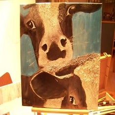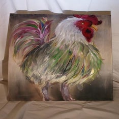 Boerenhaan, combinatie van acryl en olieverf op doek